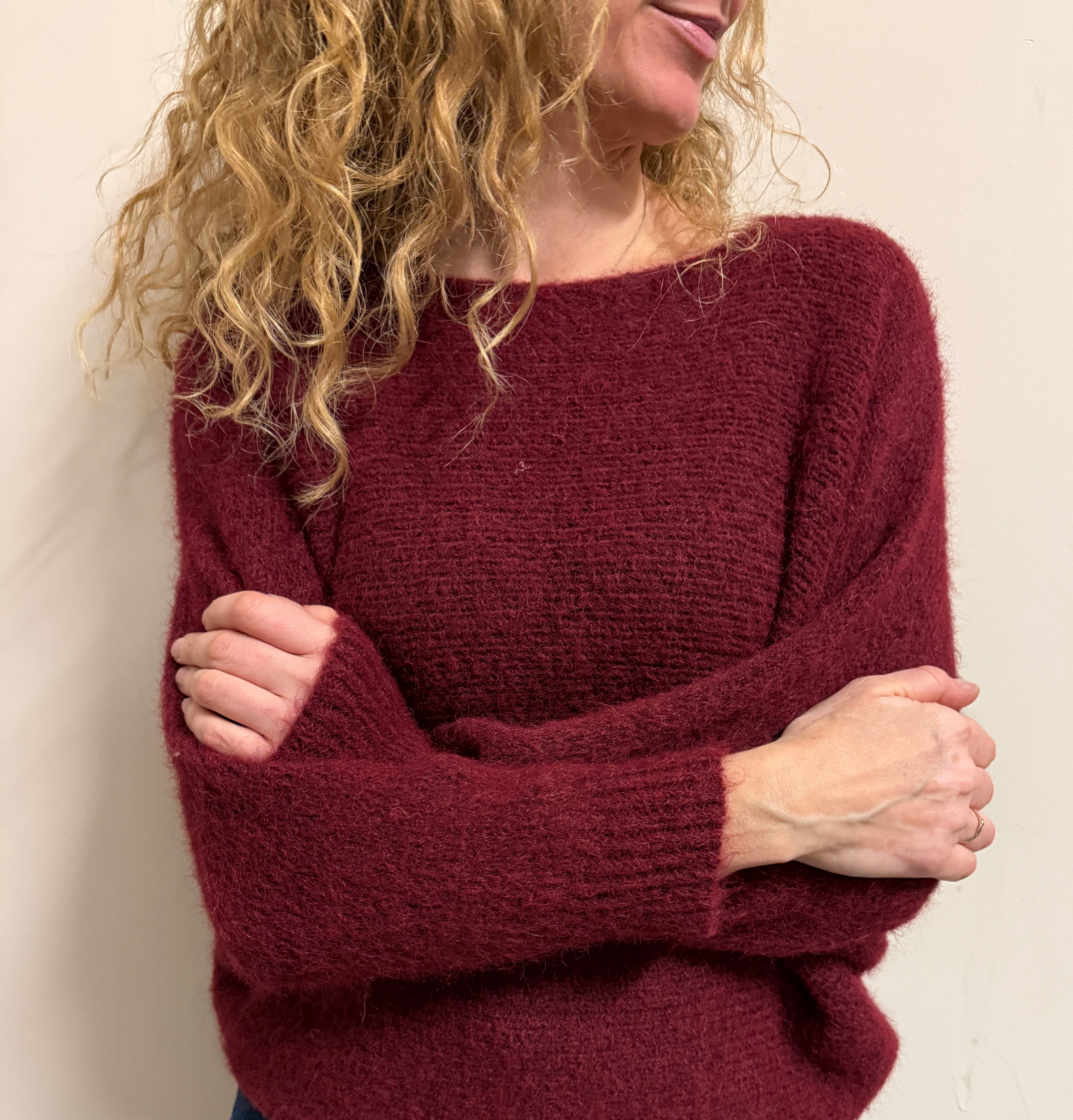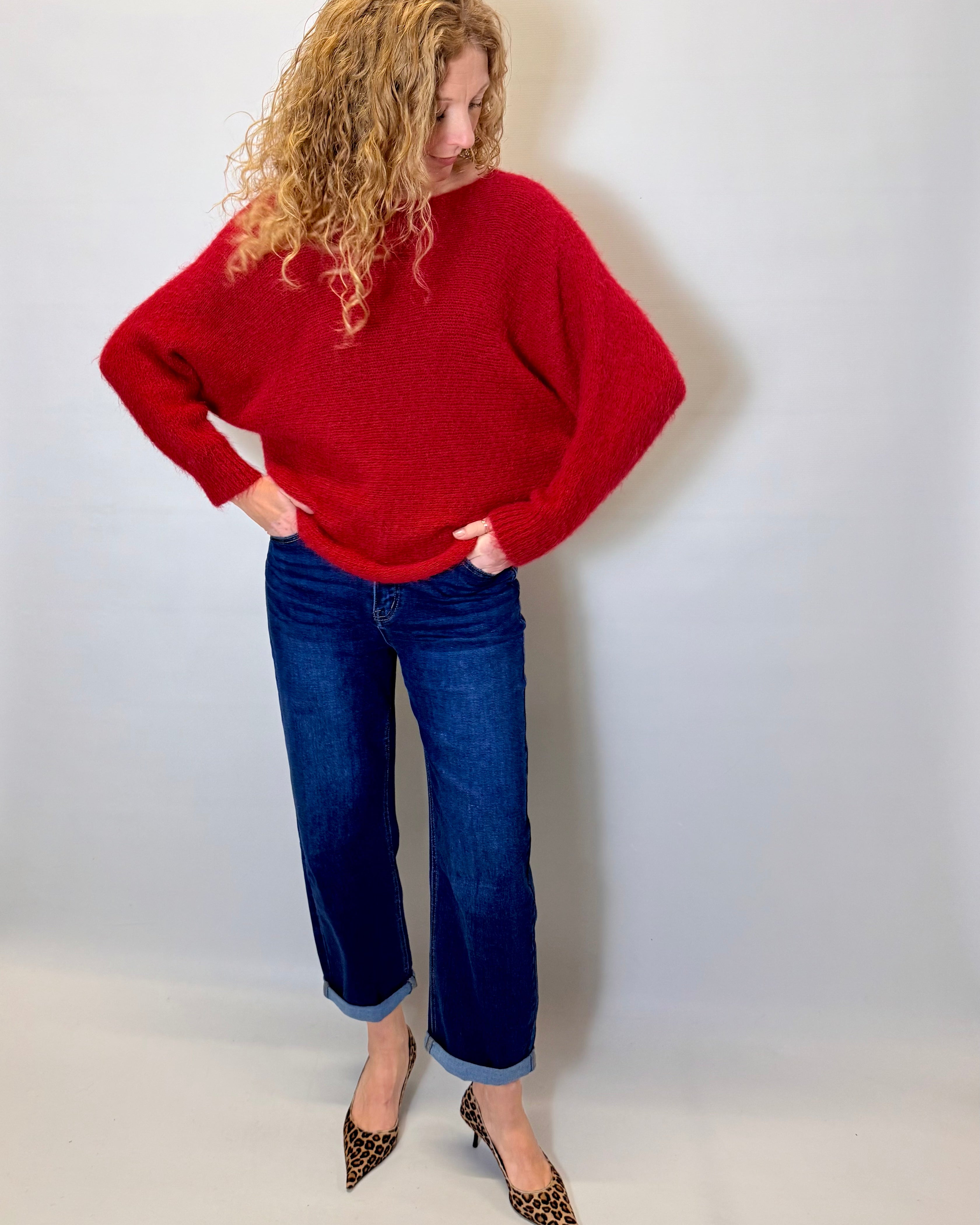 Great little sweater! I feel slimmer wearing this style! Colour just the right red and washes like a dream! Thank you- my third colour!