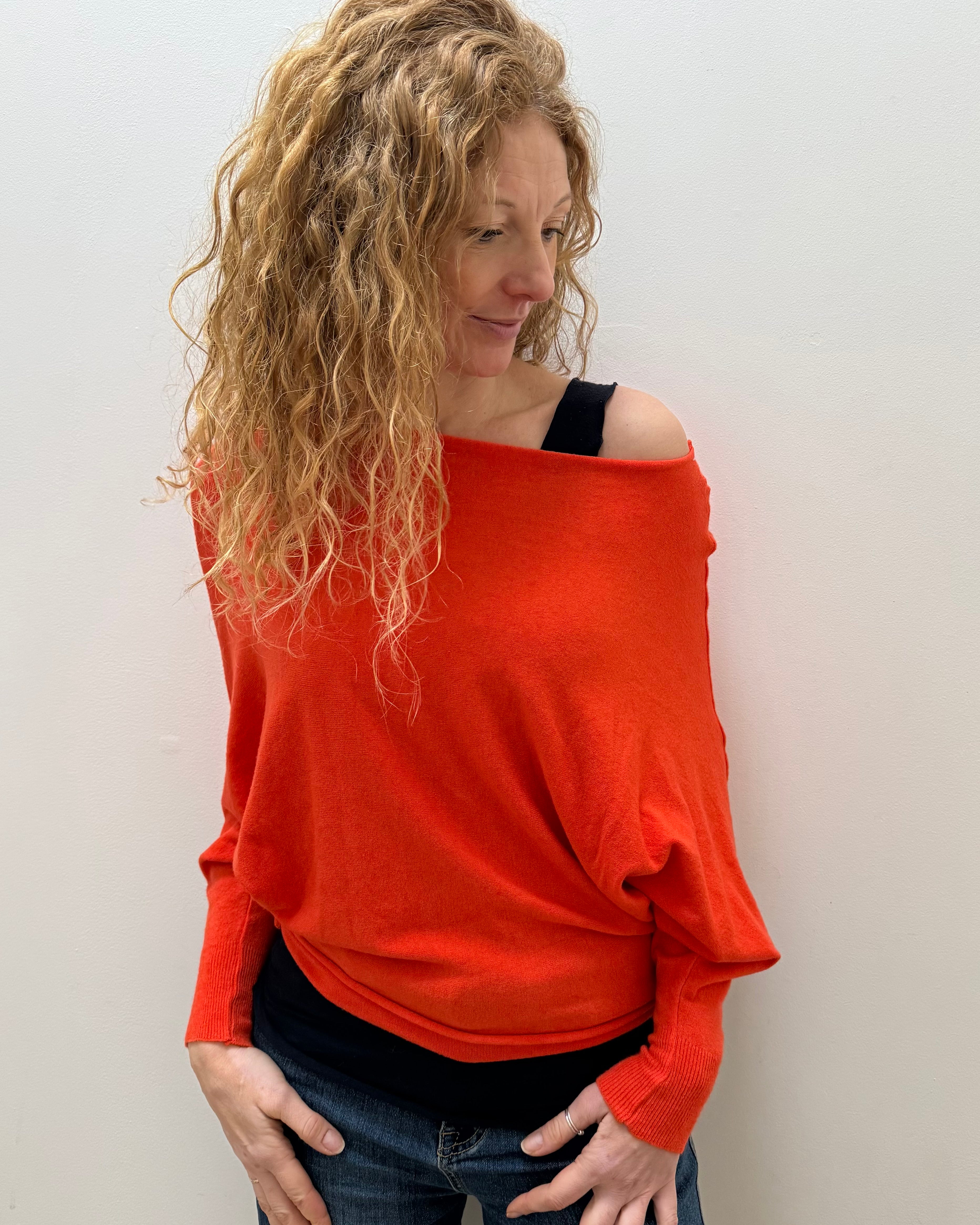 Great little sweater! I feel slimmer wearing this style! Colour just the right red and washes like a dream! Thank you- my third colour!