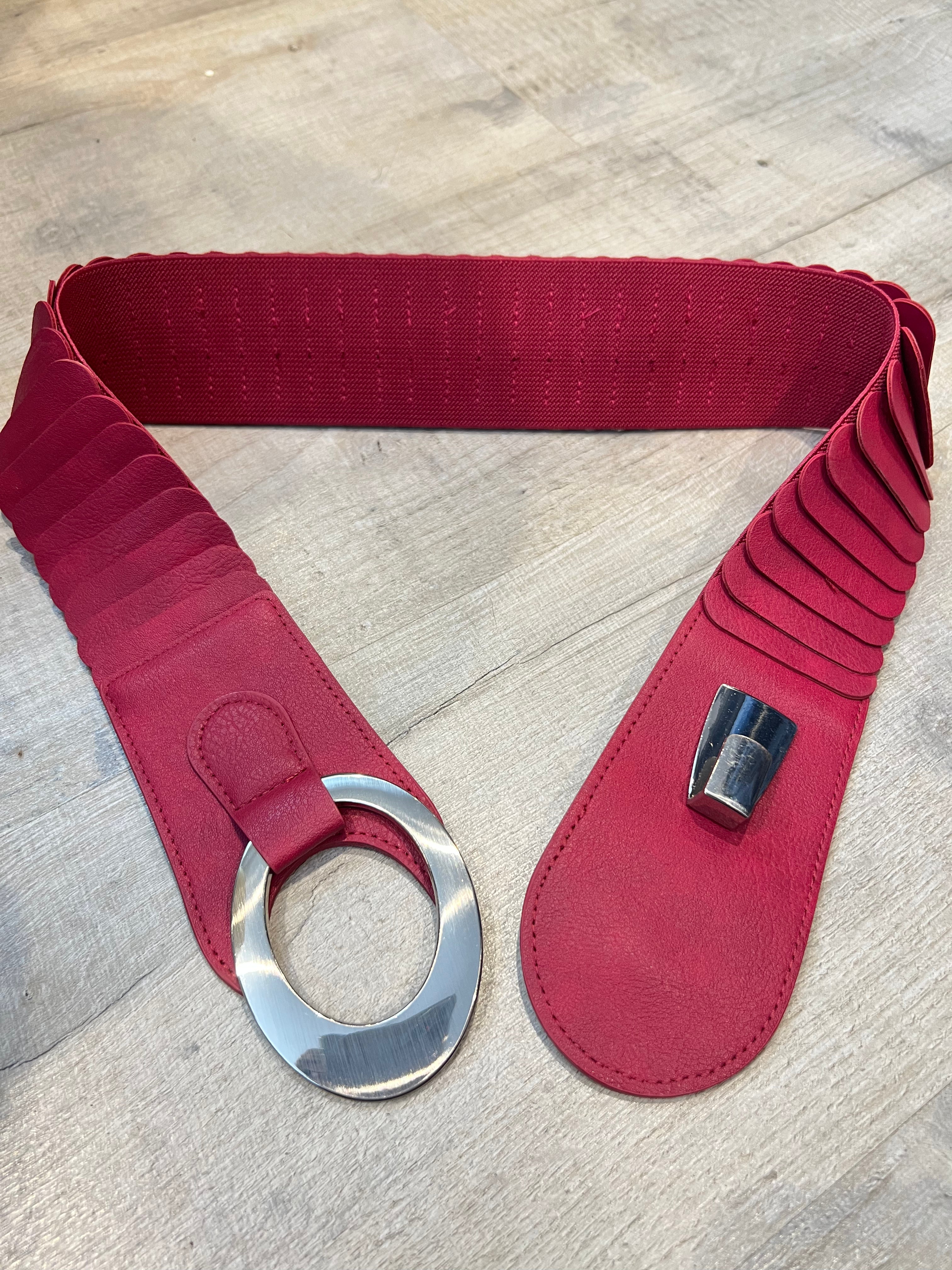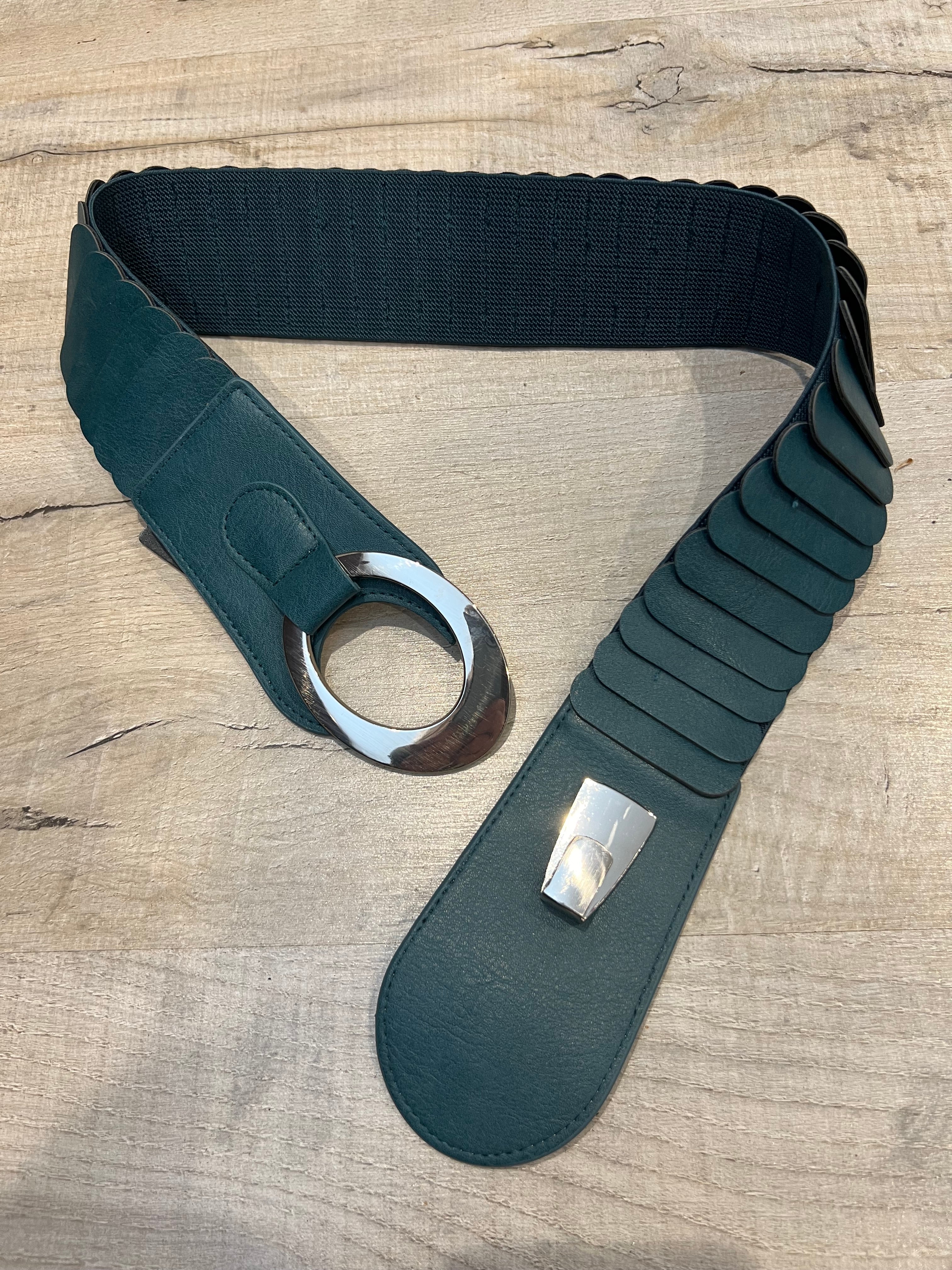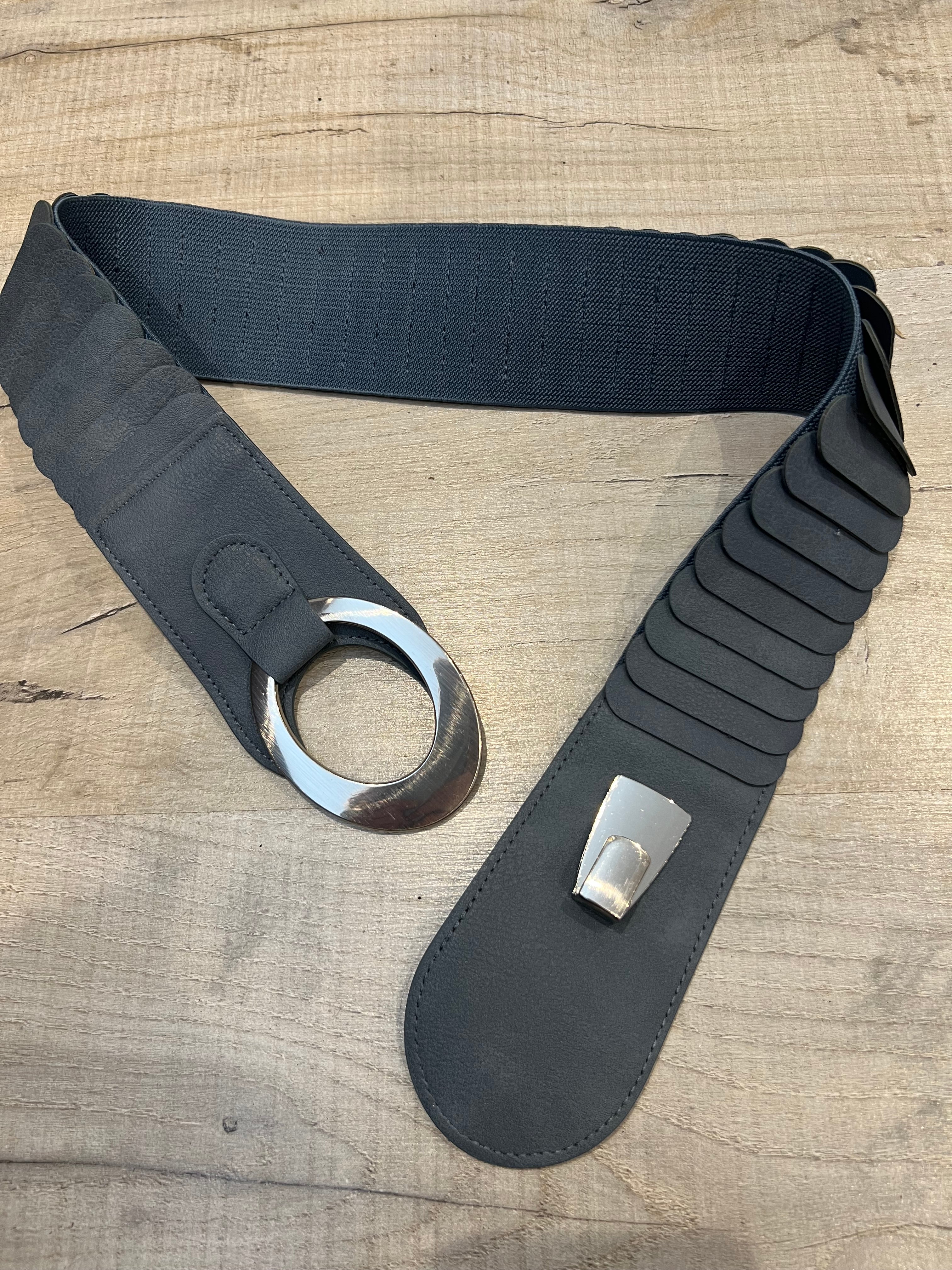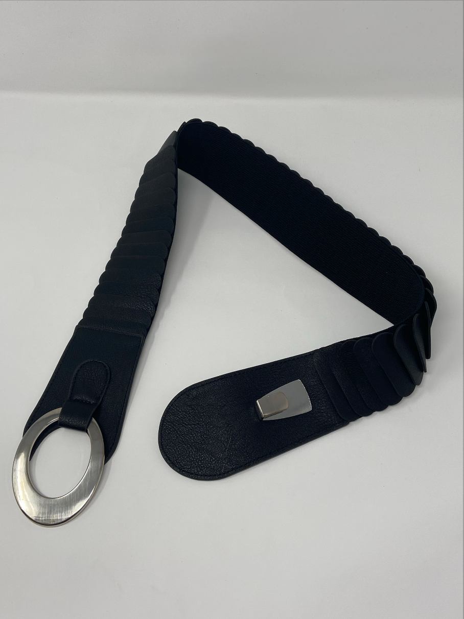 The Rebecca belt is a wide, faux leather design. Perfect to dress up any outfit and create the hour glass silhouette.