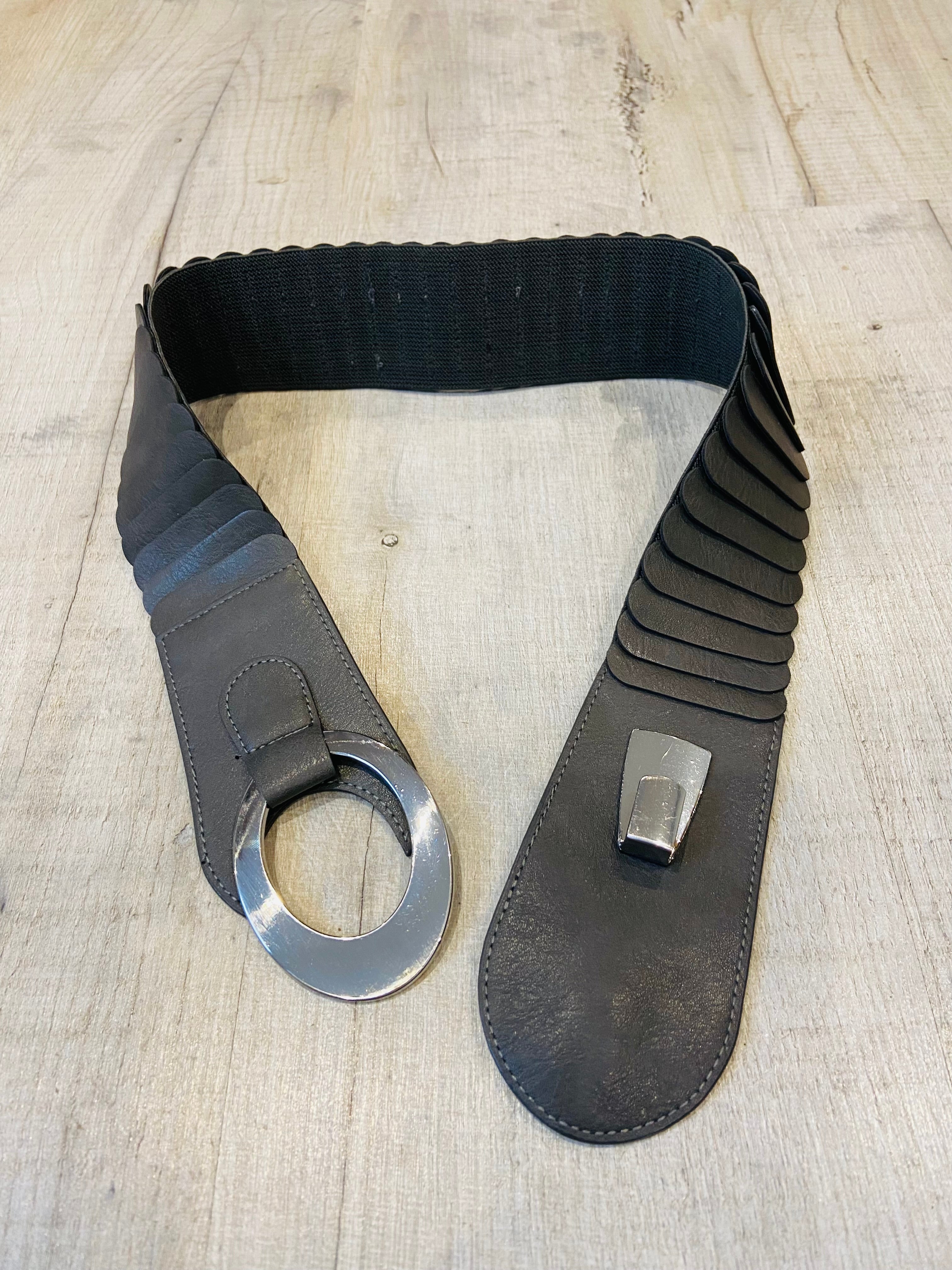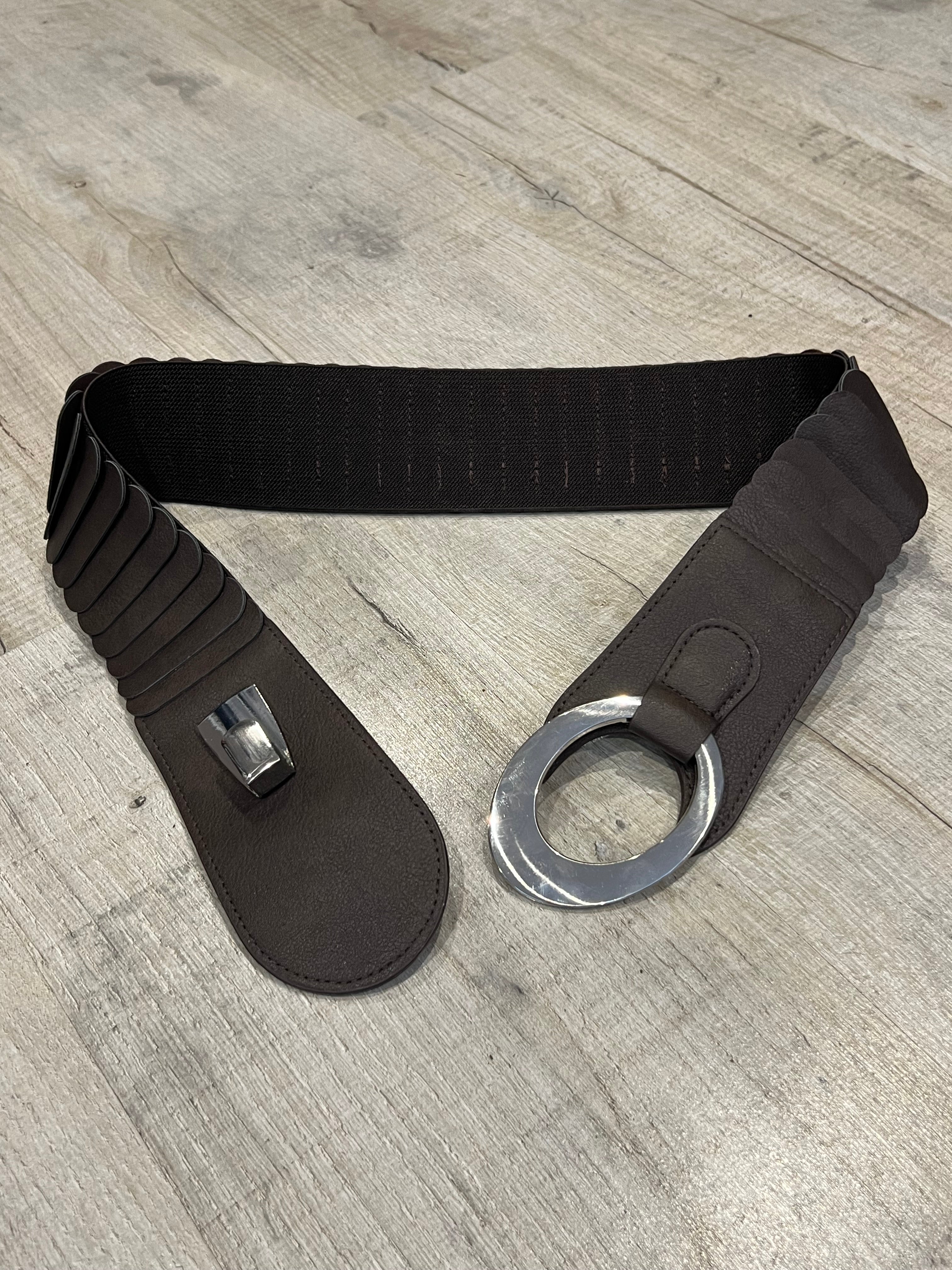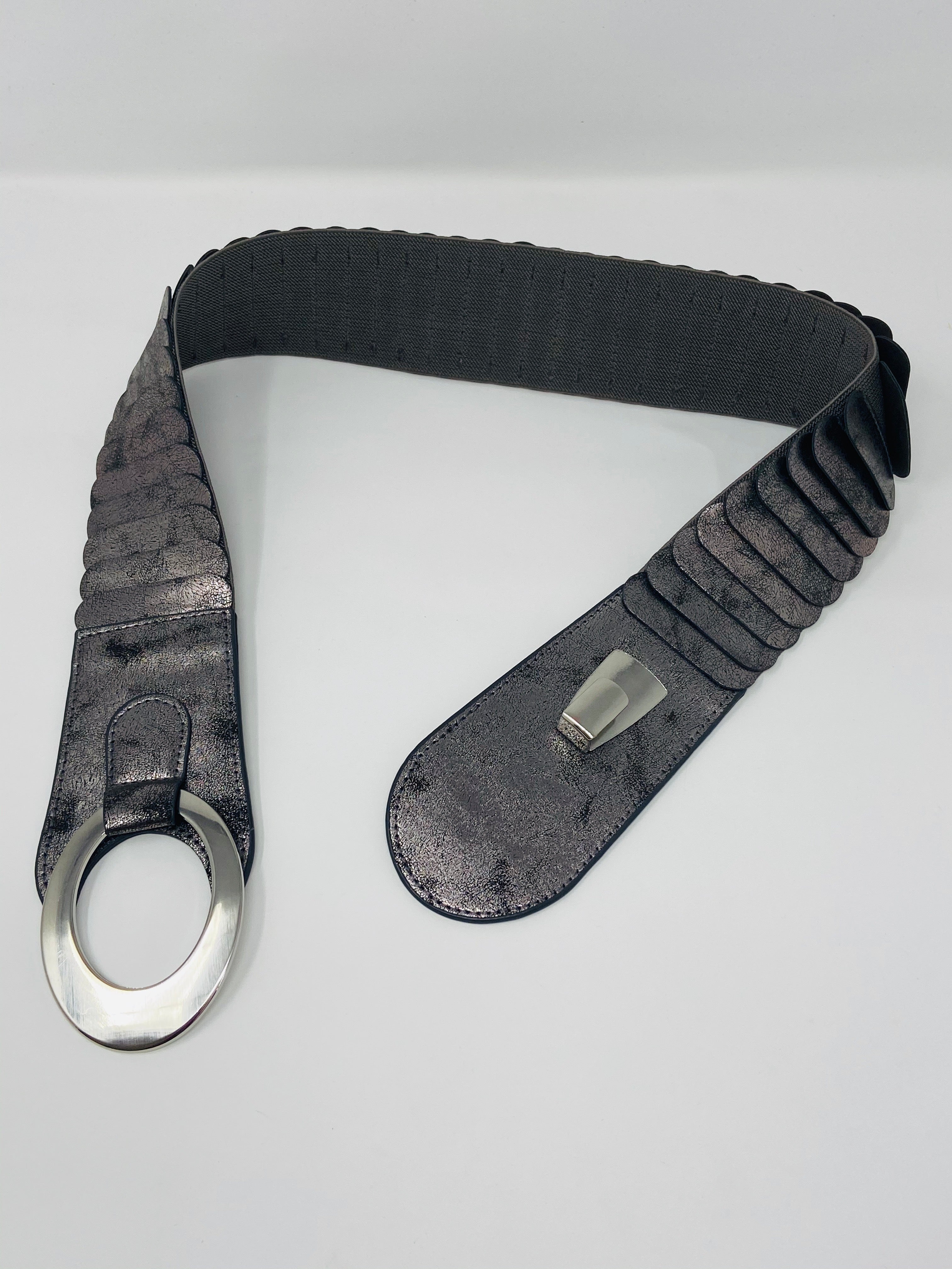 The Rebecca belt is a wide, faux leather design. Perfect to dress up any outfit and create the hour glass silhouette.