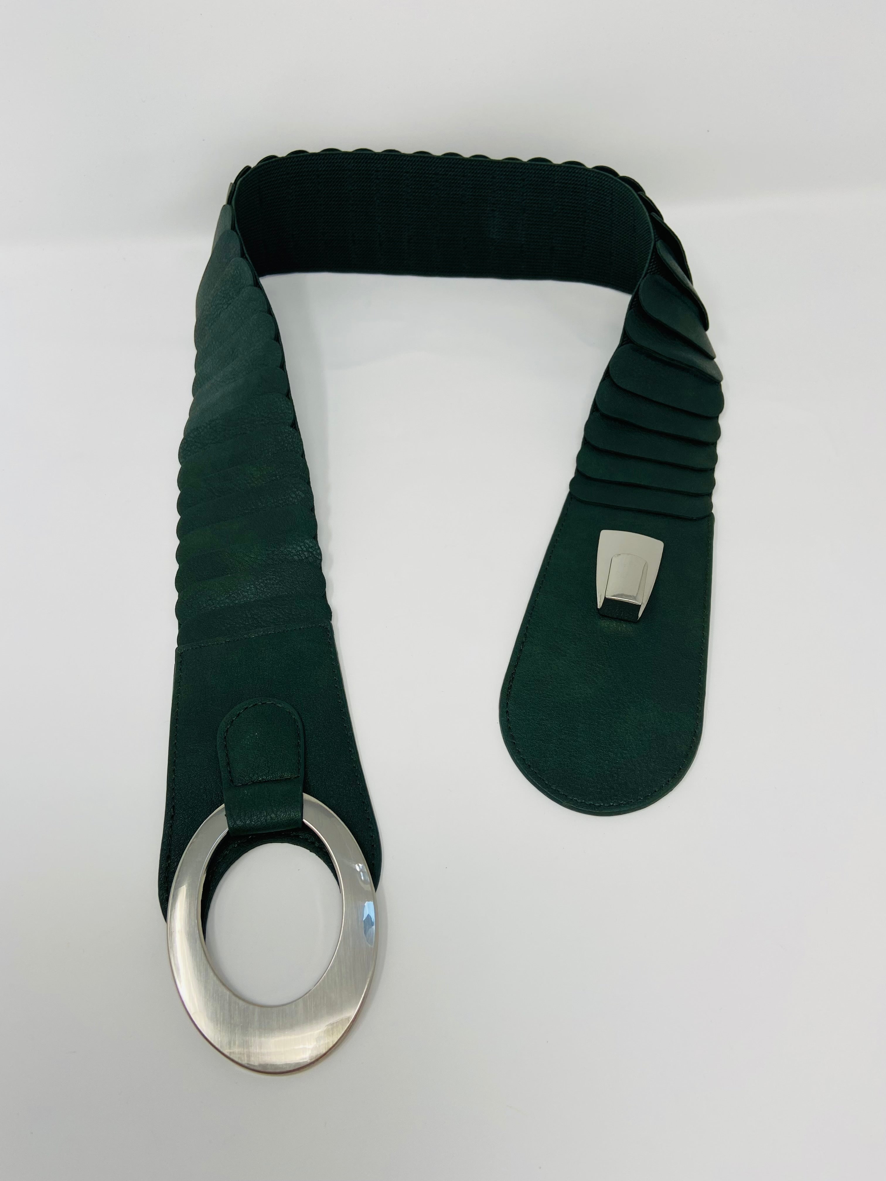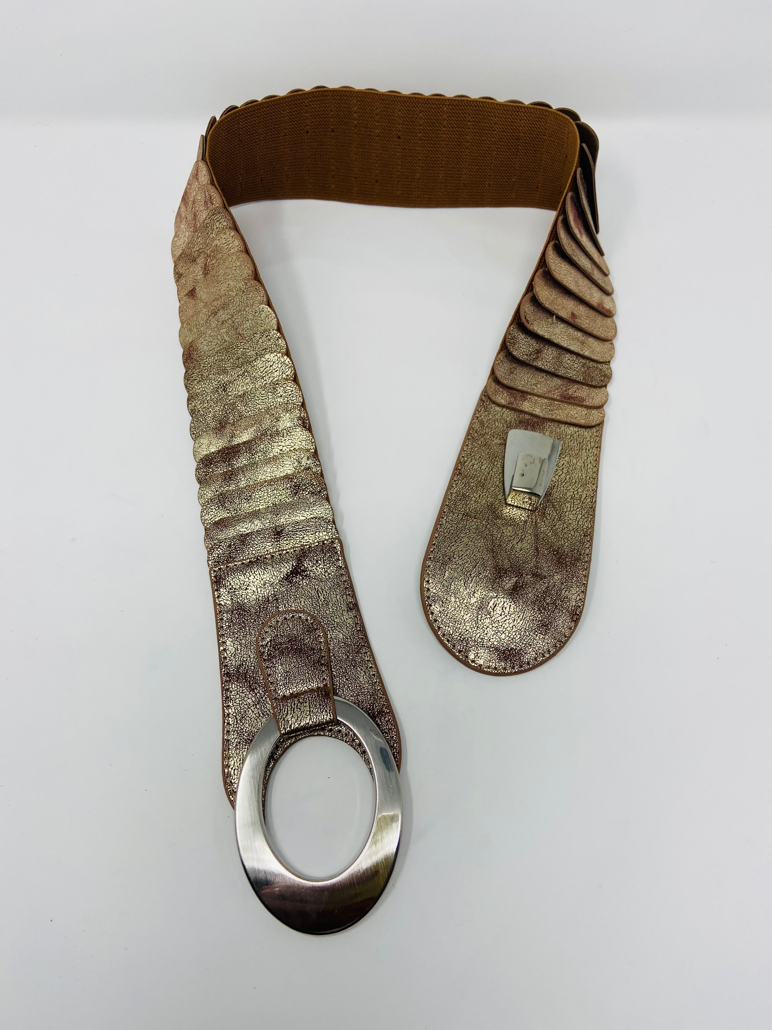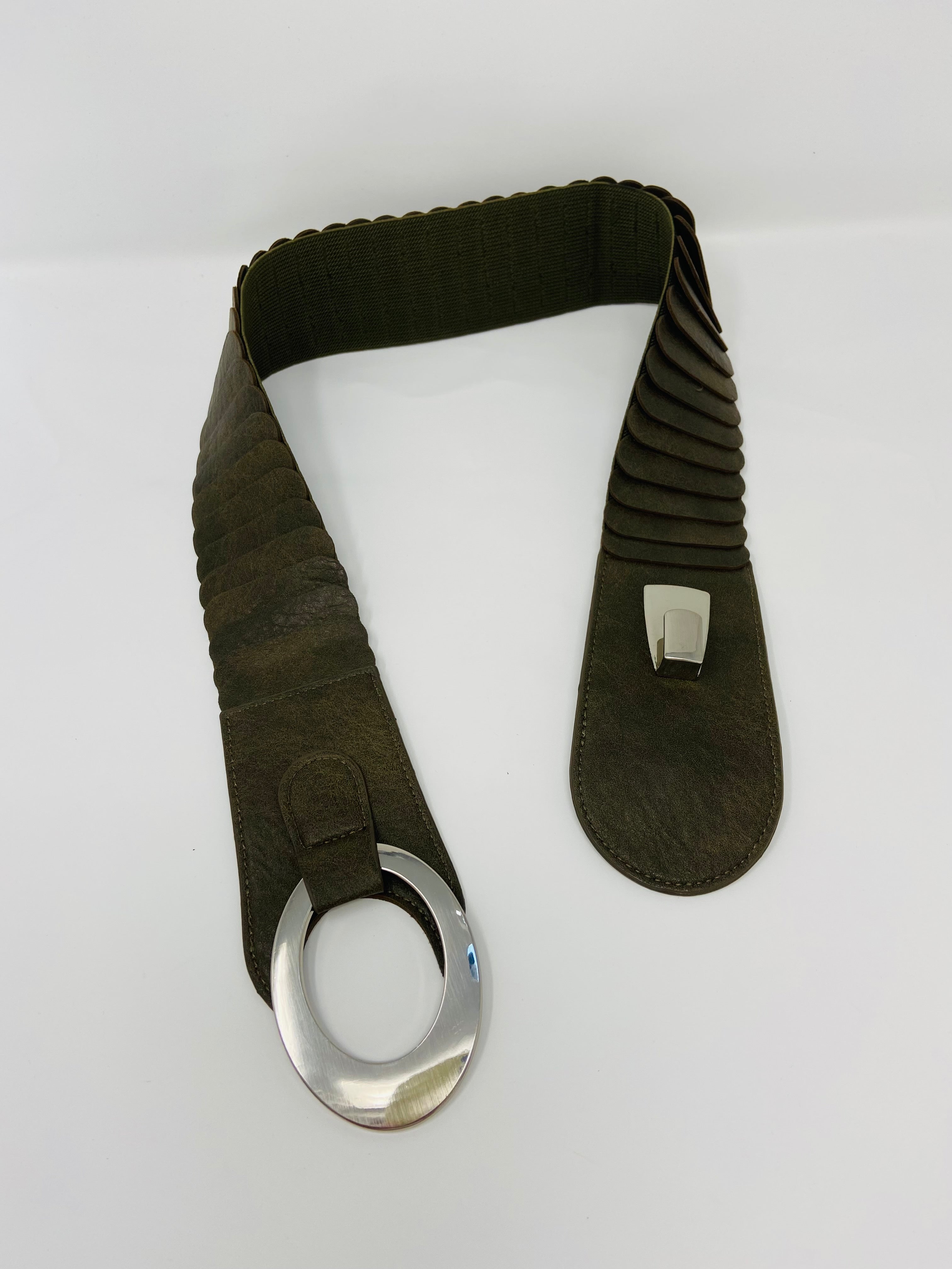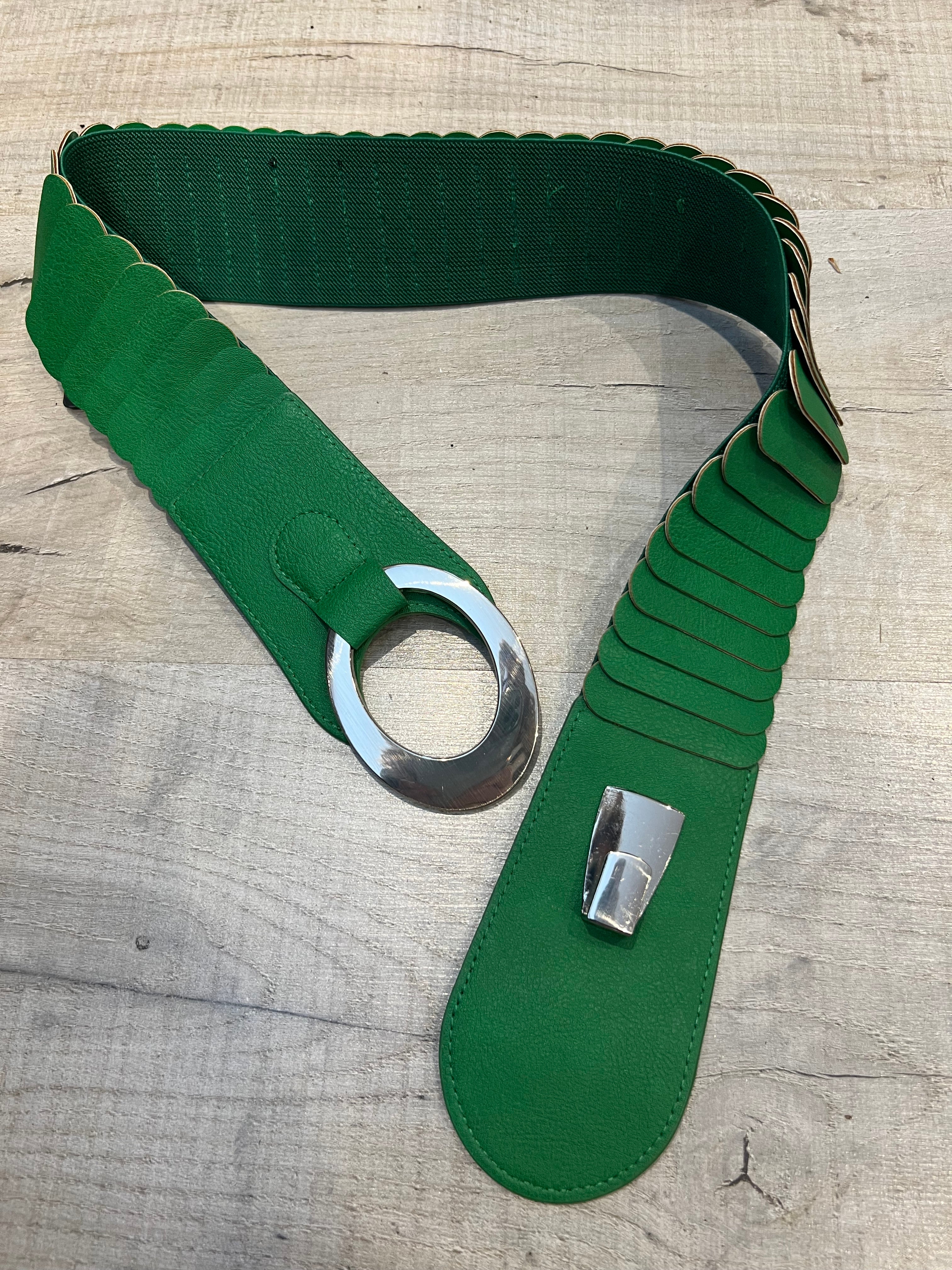 The Rebecca belt is a wide, faux leather design. Perfect to dress up any outfit and create the hour glass silhouette.