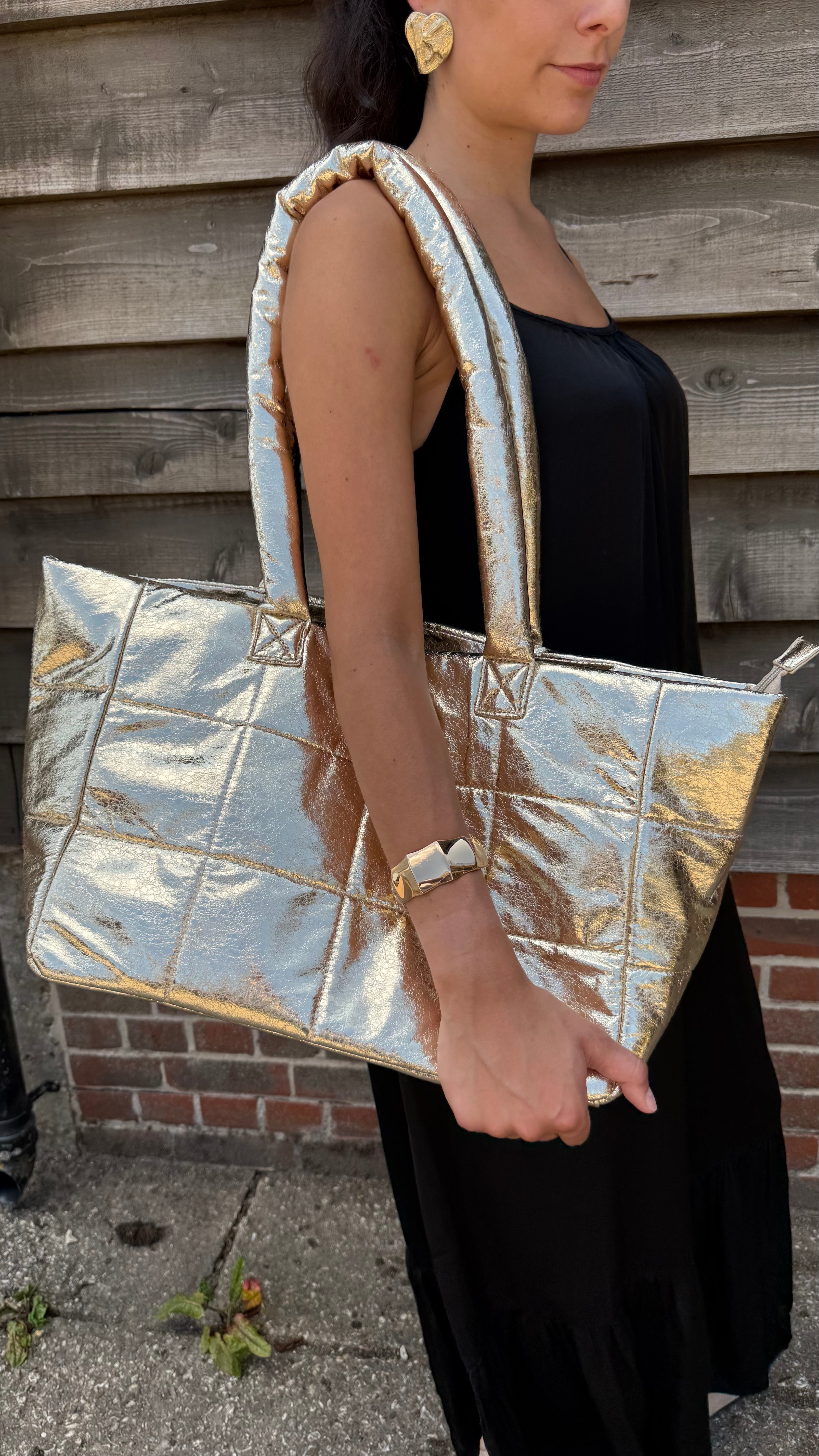Quilted tote bag perfect to carry all your daily essentials this bag is ideal for traveling too.