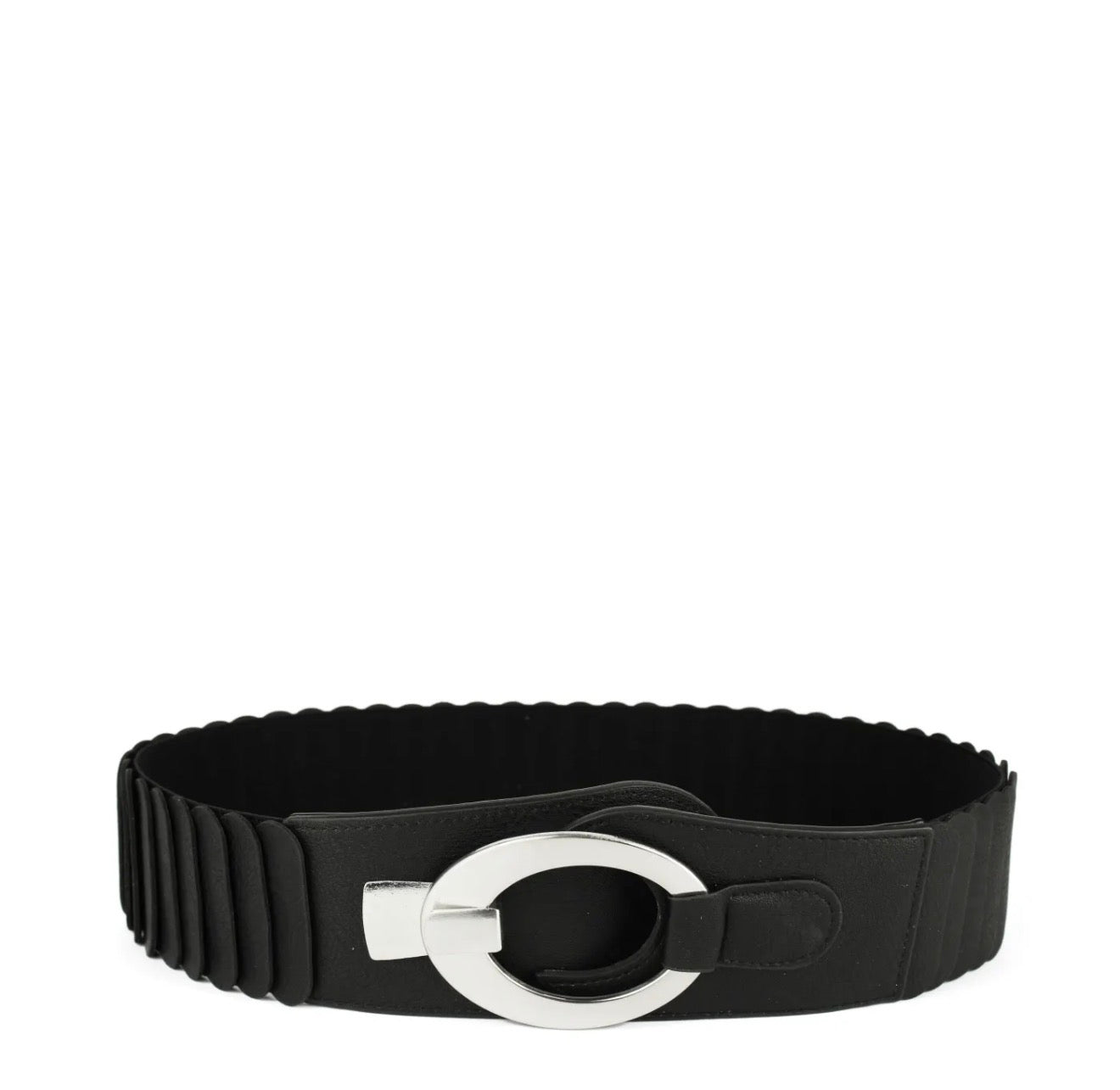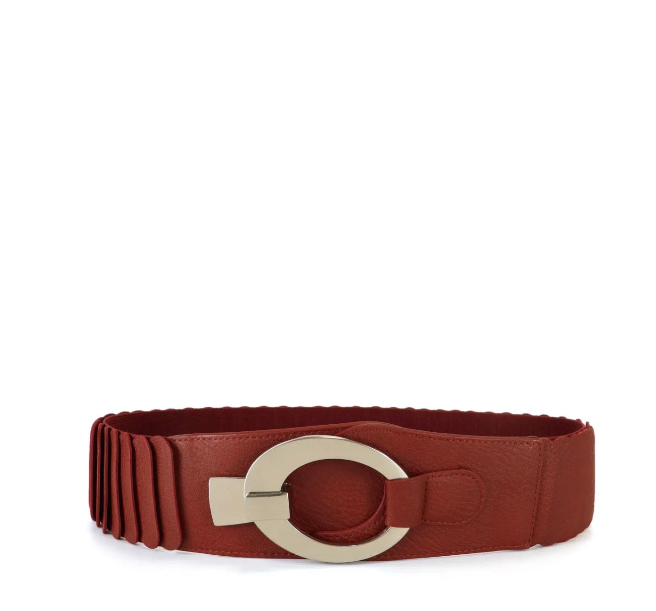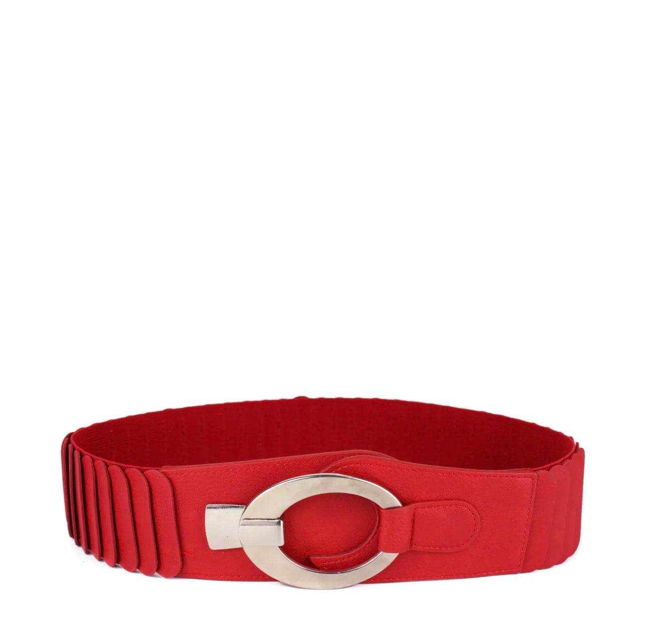 The Rebecca belt is a wide, faux leather design. Perfect to dress up any outfit and create the hour glass silhouette.