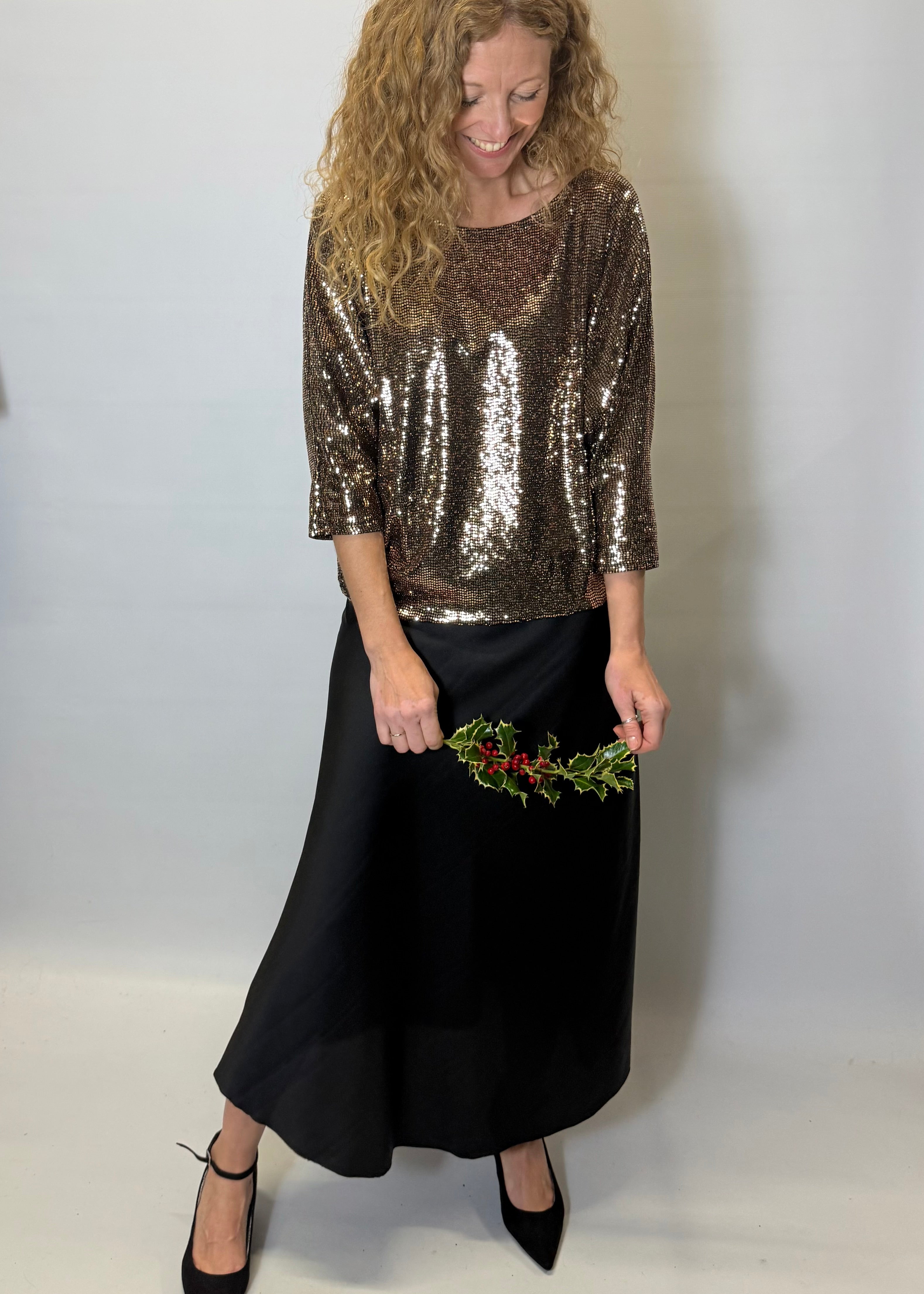 This is a gorgeous sparkly blouse, slightly fitted on the waist, very versatile and suits most body shapes.