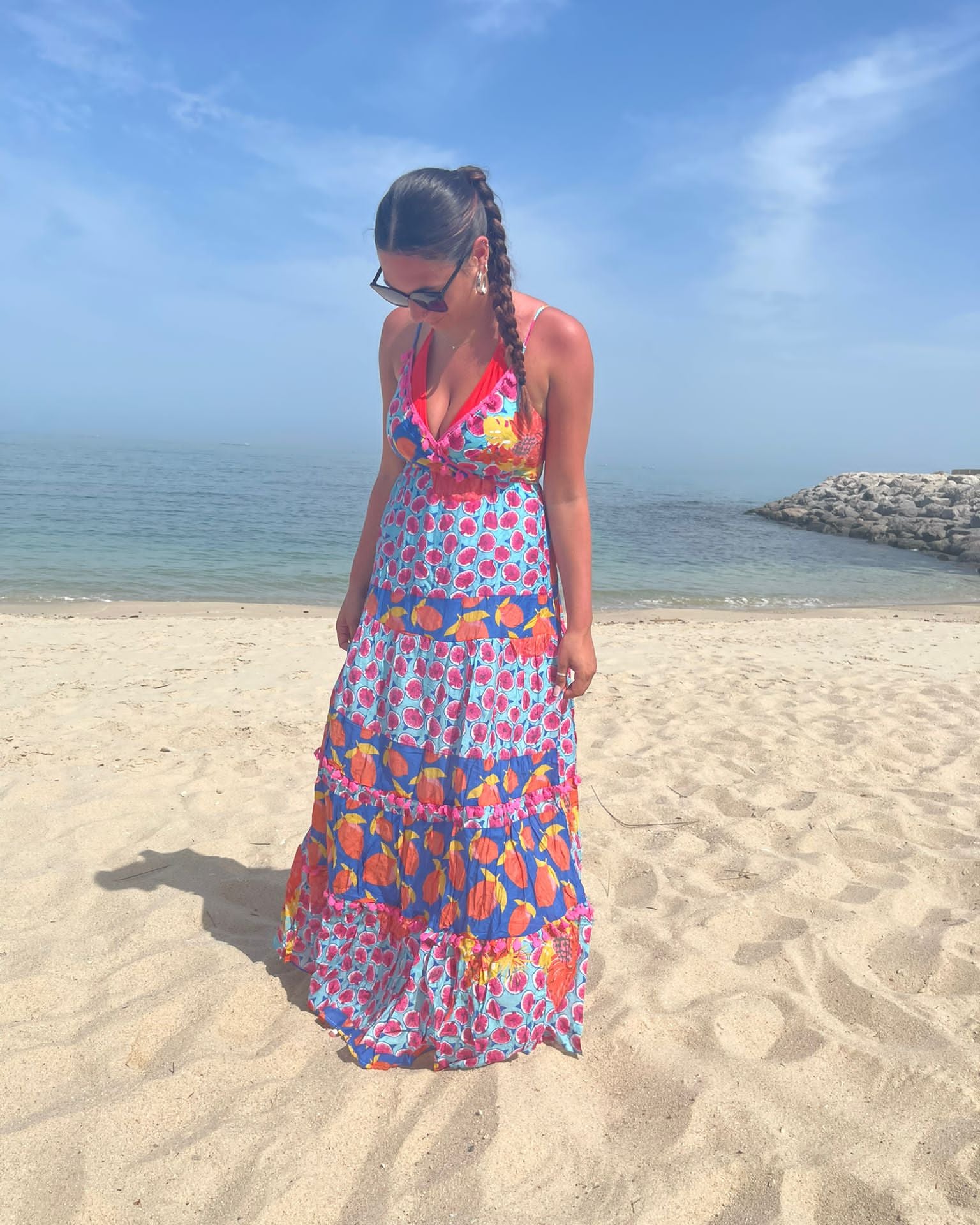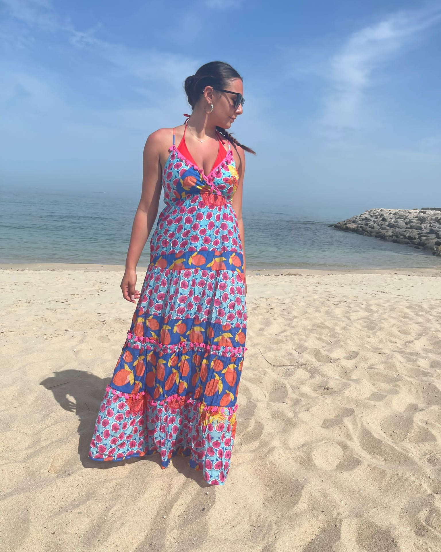 This gentle viscose kaftan offers an ideal choice for your summer getaway.