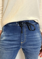 The Freya jeans are constructed with a soft denim material making them the ideal easy wear trouser. They have an elastic waistband and a tie up feature.