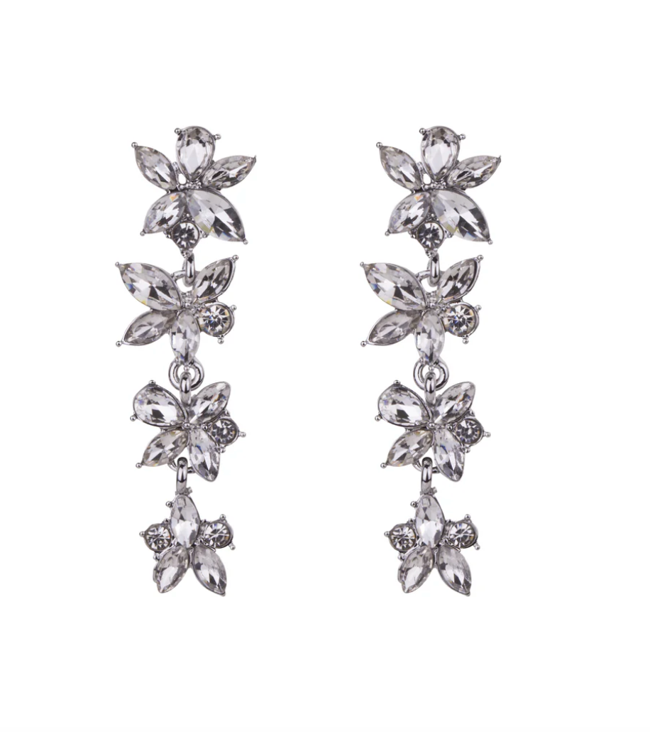 Silver horse-shaped brooch with crystal embellishments on a white background