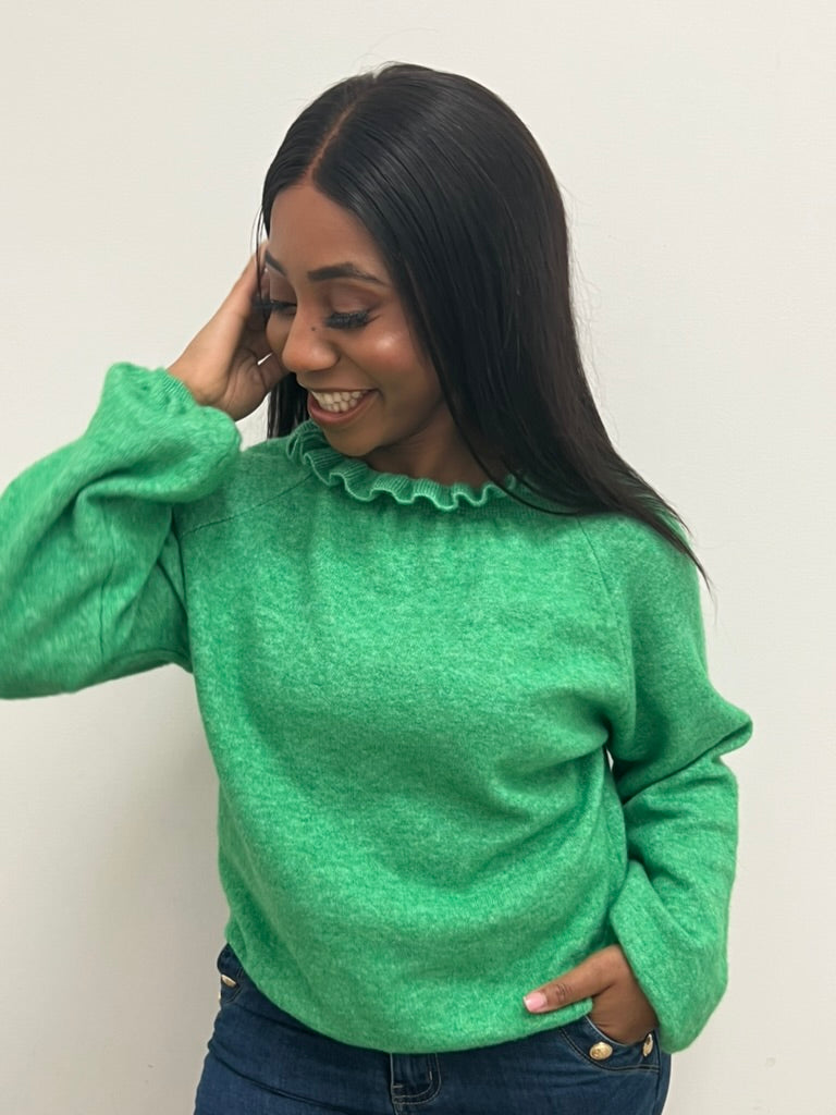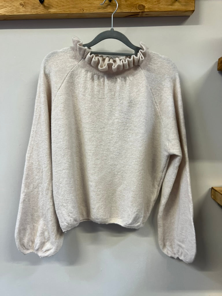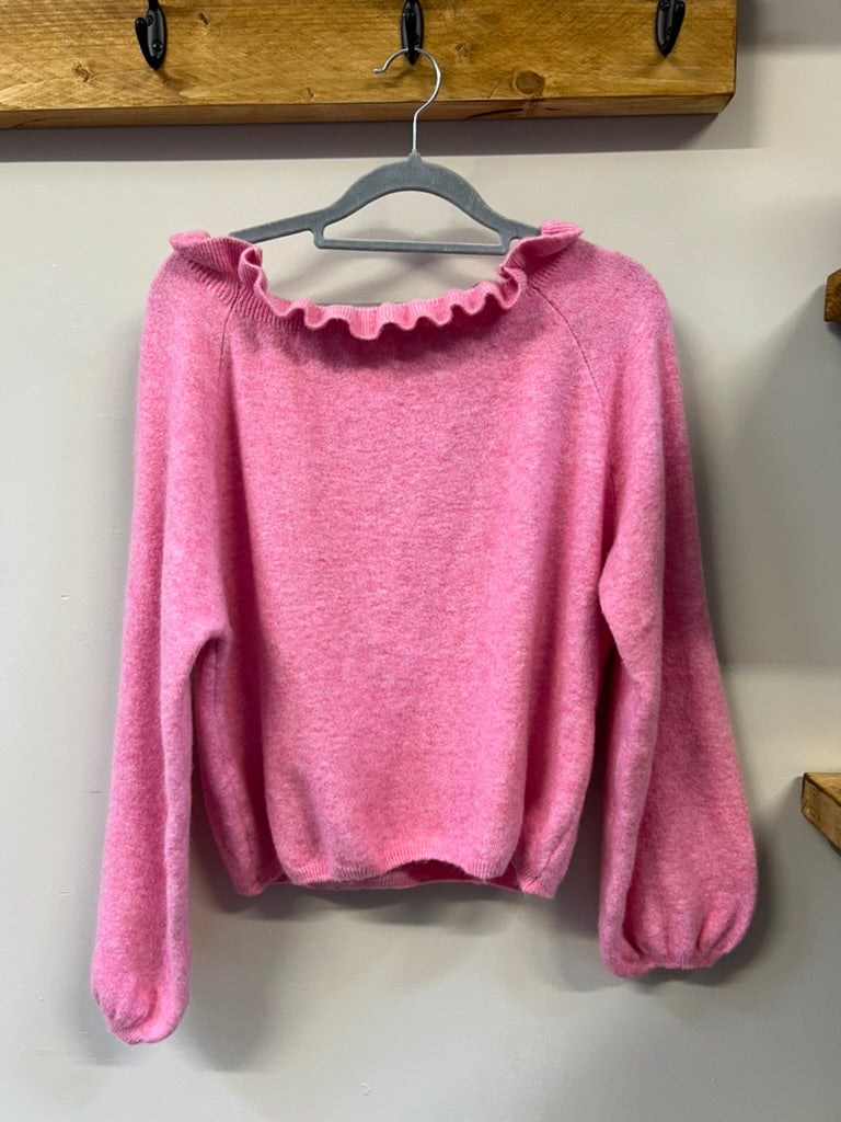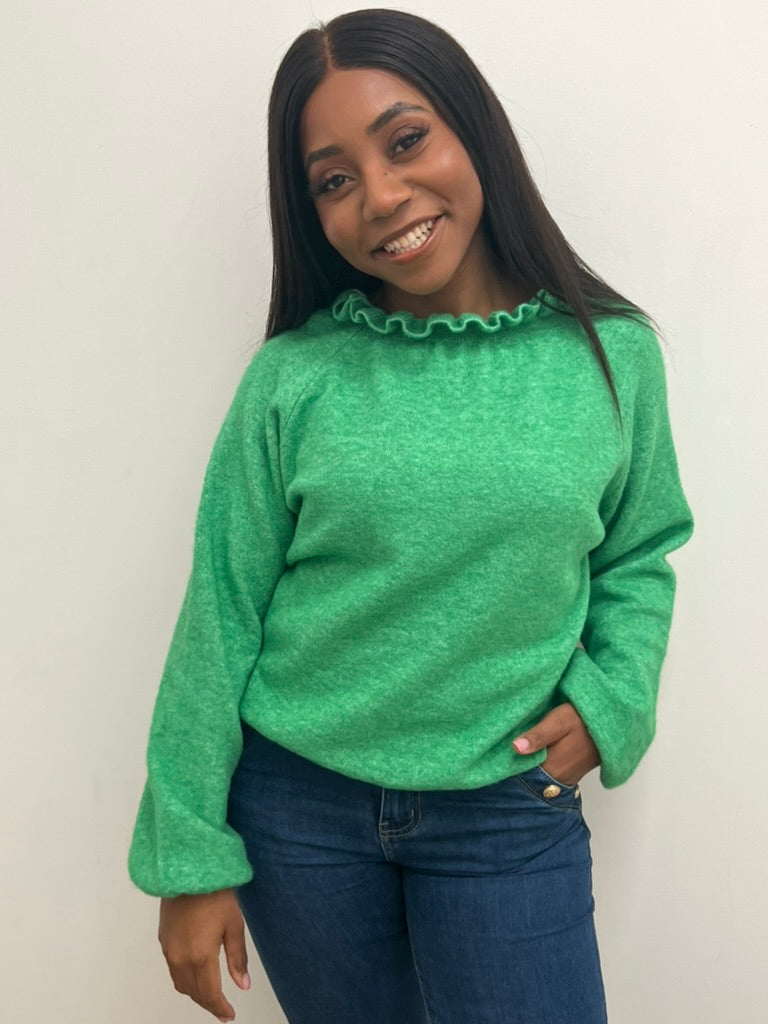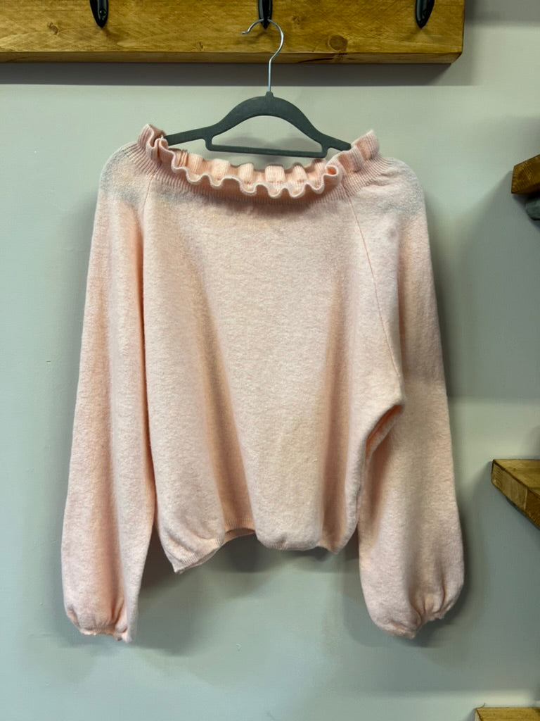 A comfortable soft jumper with frill details on the neck
