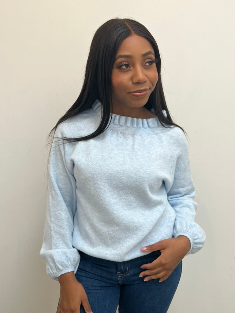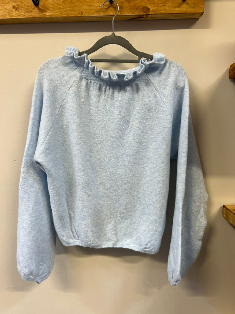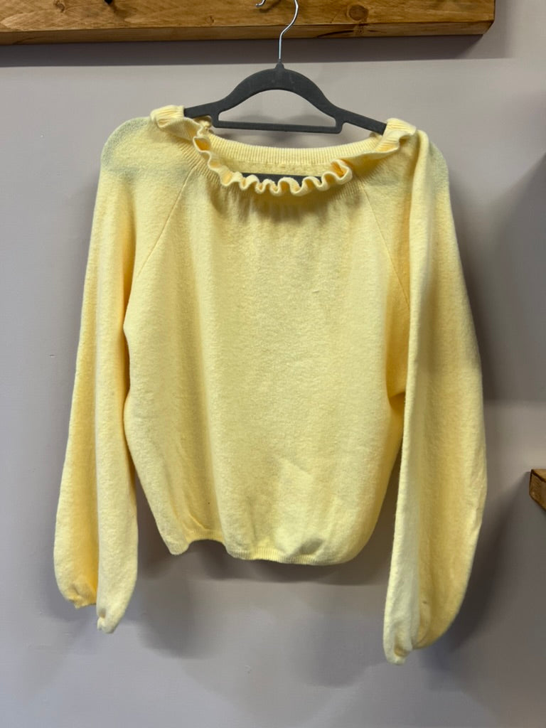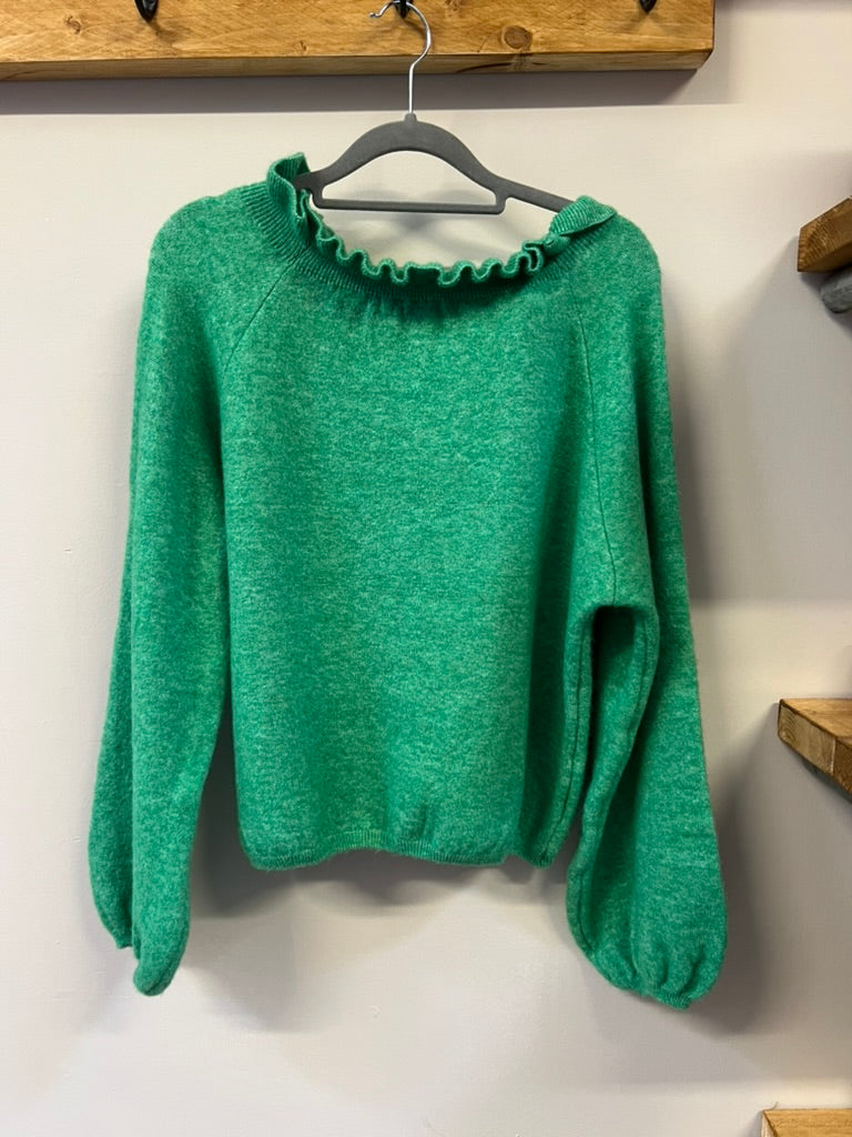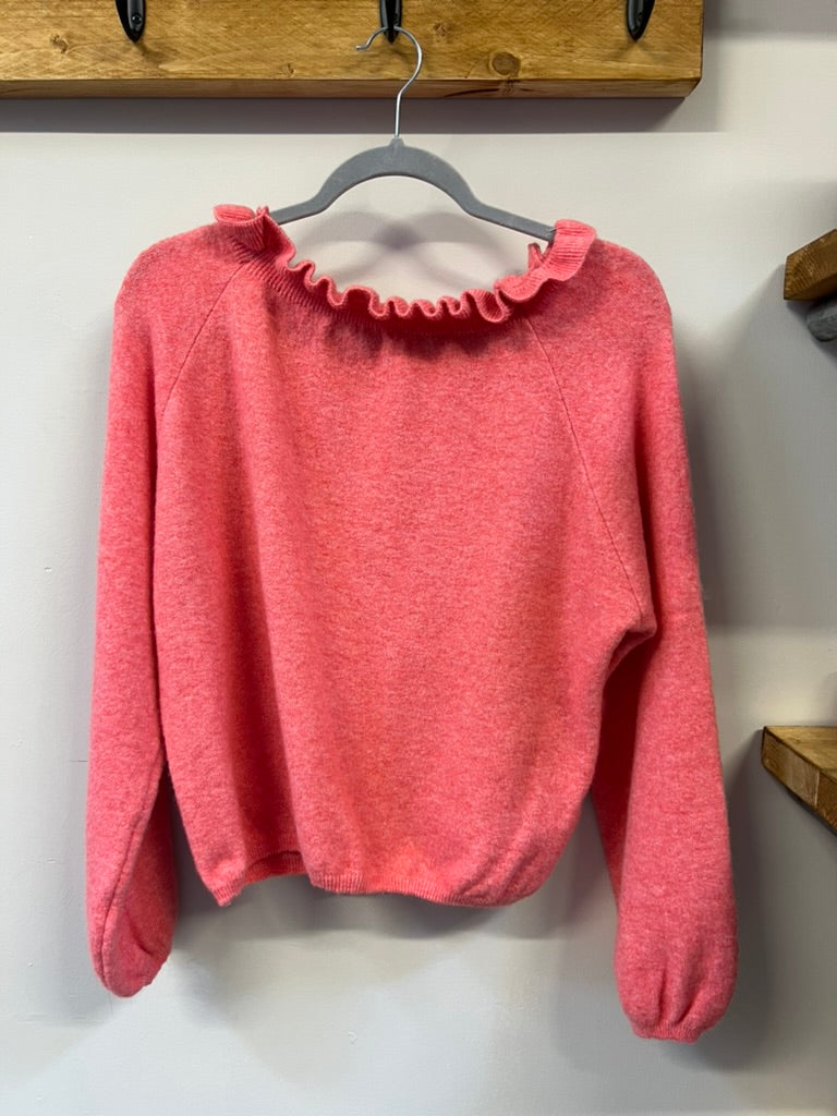A comfortable soft jumper with frill details on the neck