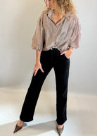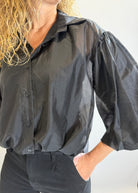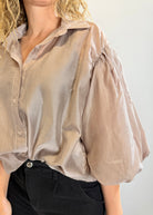 This blouse is designed with balloon sleeves, adding a fashionable touch to your wardrobe.