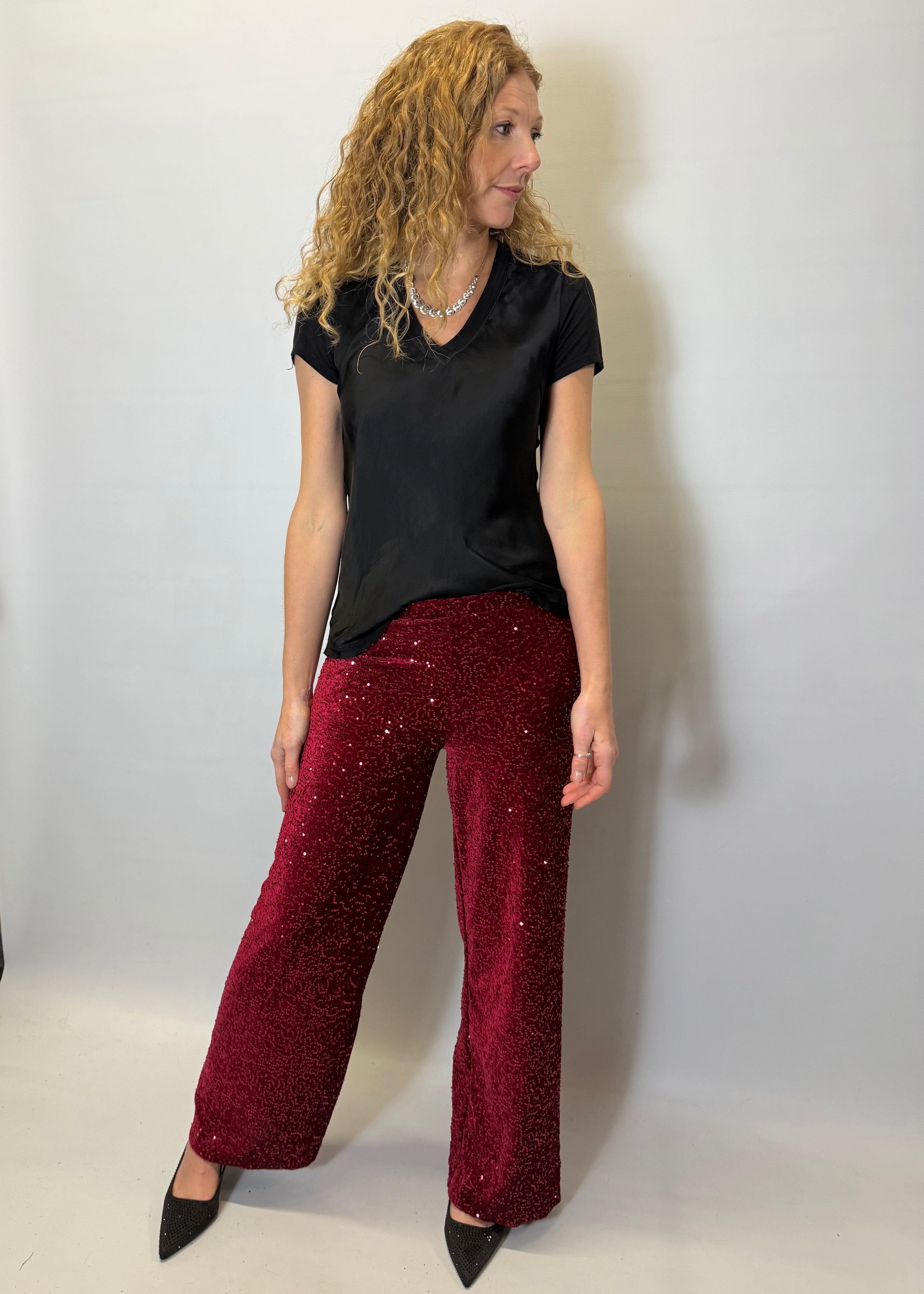 Introducing our Sequins Trousers, where style and comfort collide. These sparkly trousers are fully lined and stretchy, providing both fashion and ease. Upgrade your wardrobe with our comfortable and stylish Sequins Trousers.