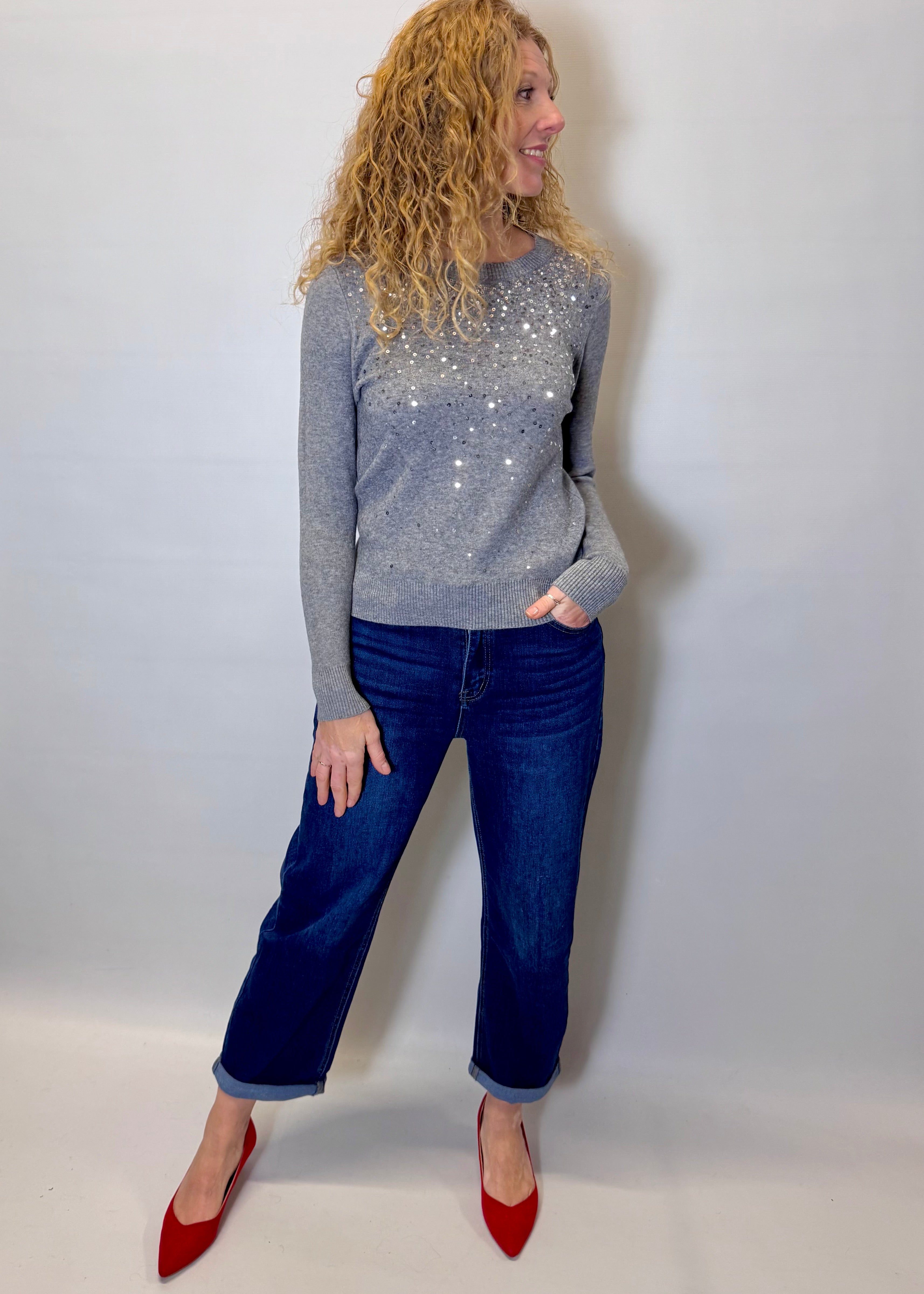 The Seraphina Jumper is the perfect addition to your party attire. Its soft and heavy viscose material provides comfort and elegance, while the sequin details add a touch of glamour.