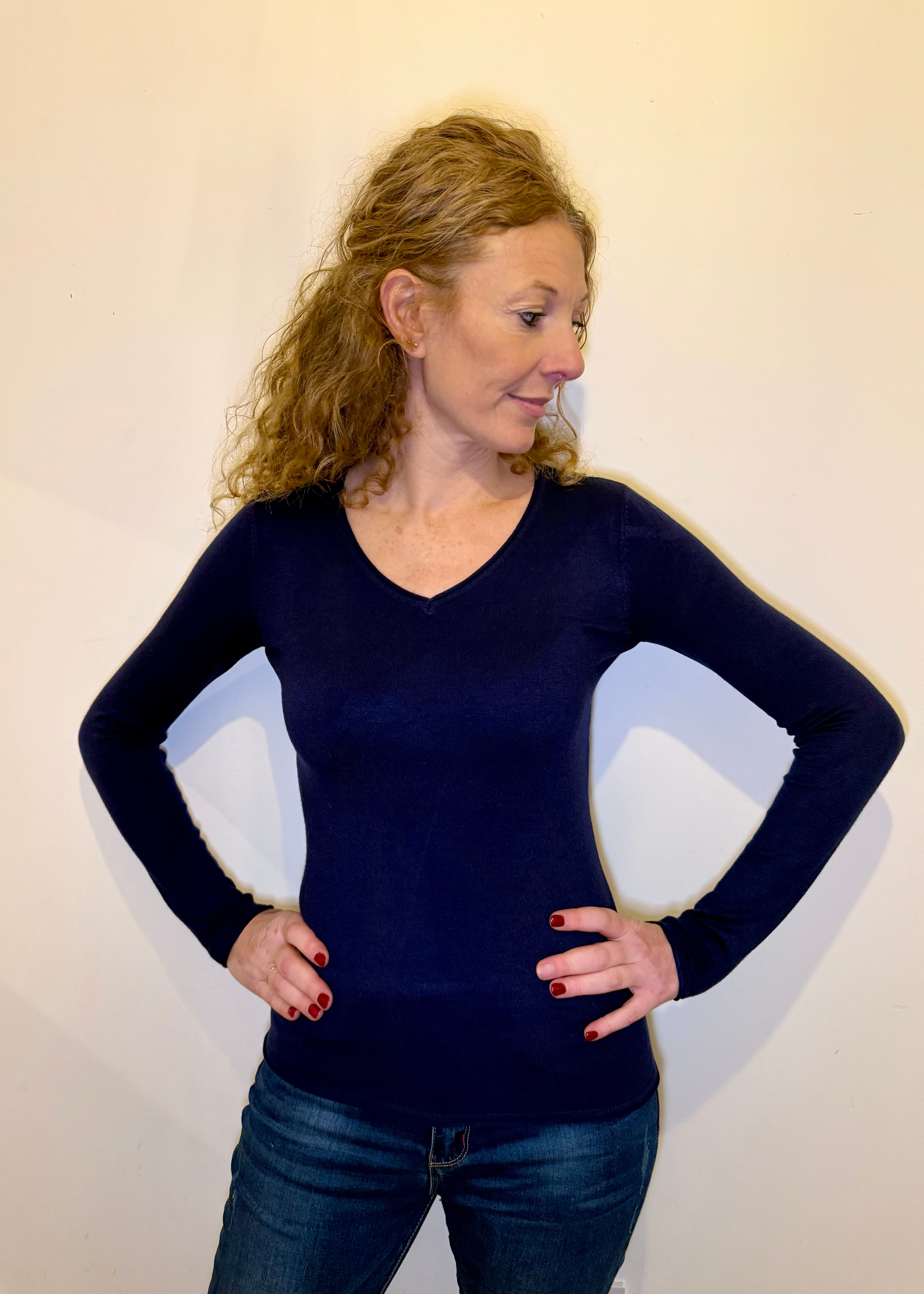 Strati is a a collection of essential pieces available to create versatile layers ("strati " in Italian!) to take you through the seasons.This soft wide v neck jumper is perfect for layering.