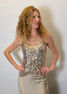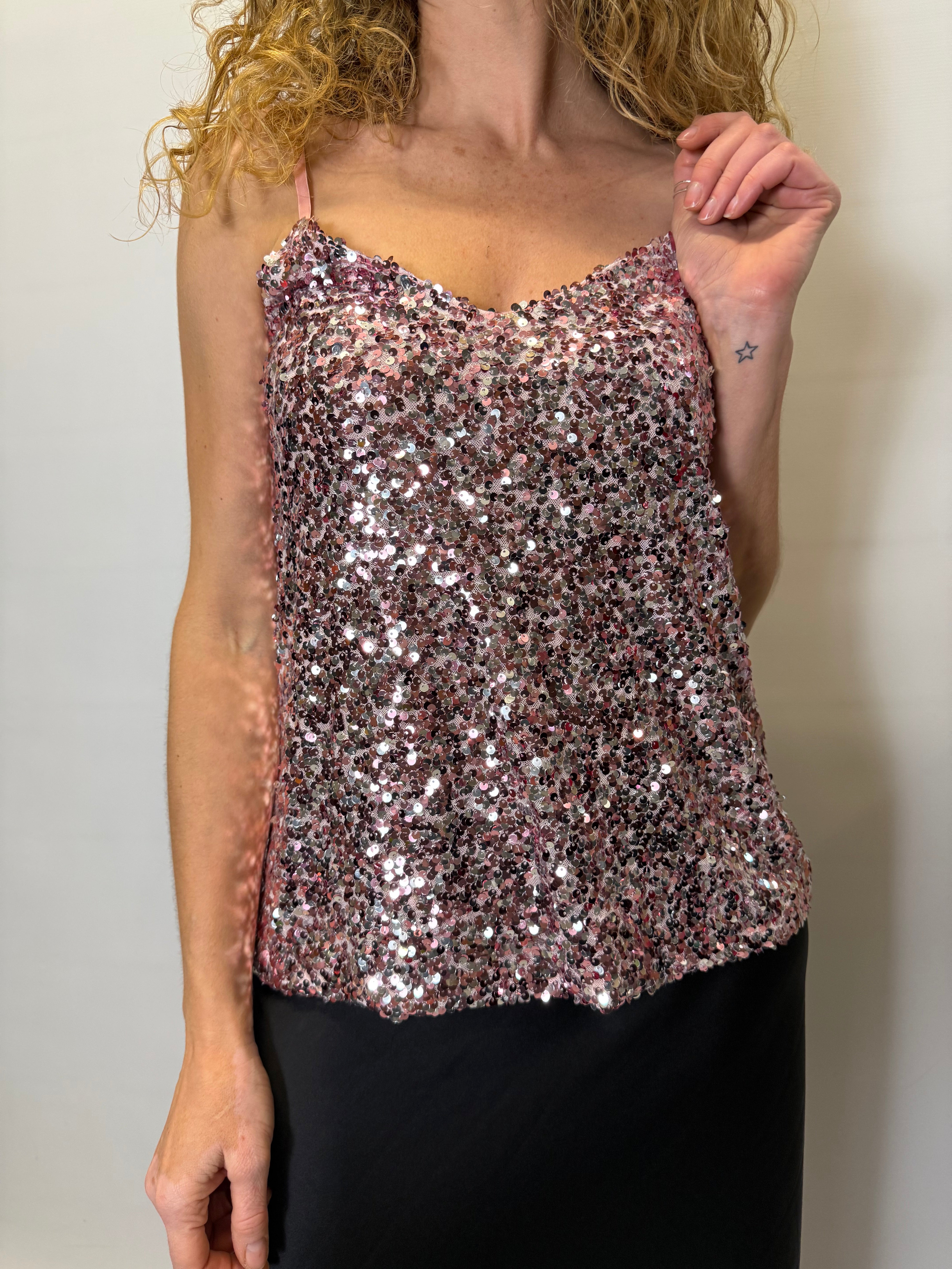 This sequins vest creates effortless style and it's perfect for a night out. It features adjustable straps.