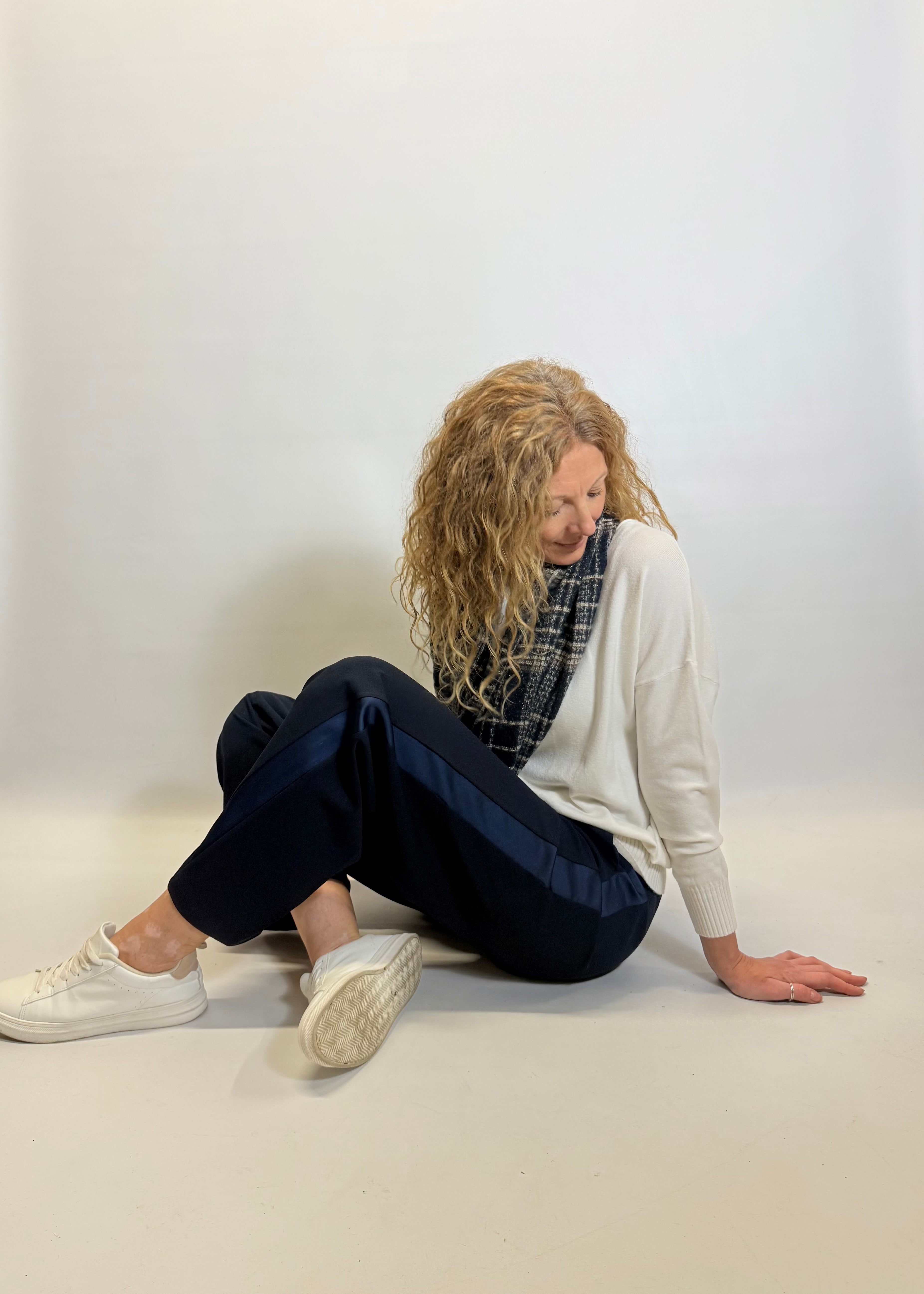 These Trousers have a smart but comfy style. Stretchy and comfortable. Where style meets comfort. With a satin stripe