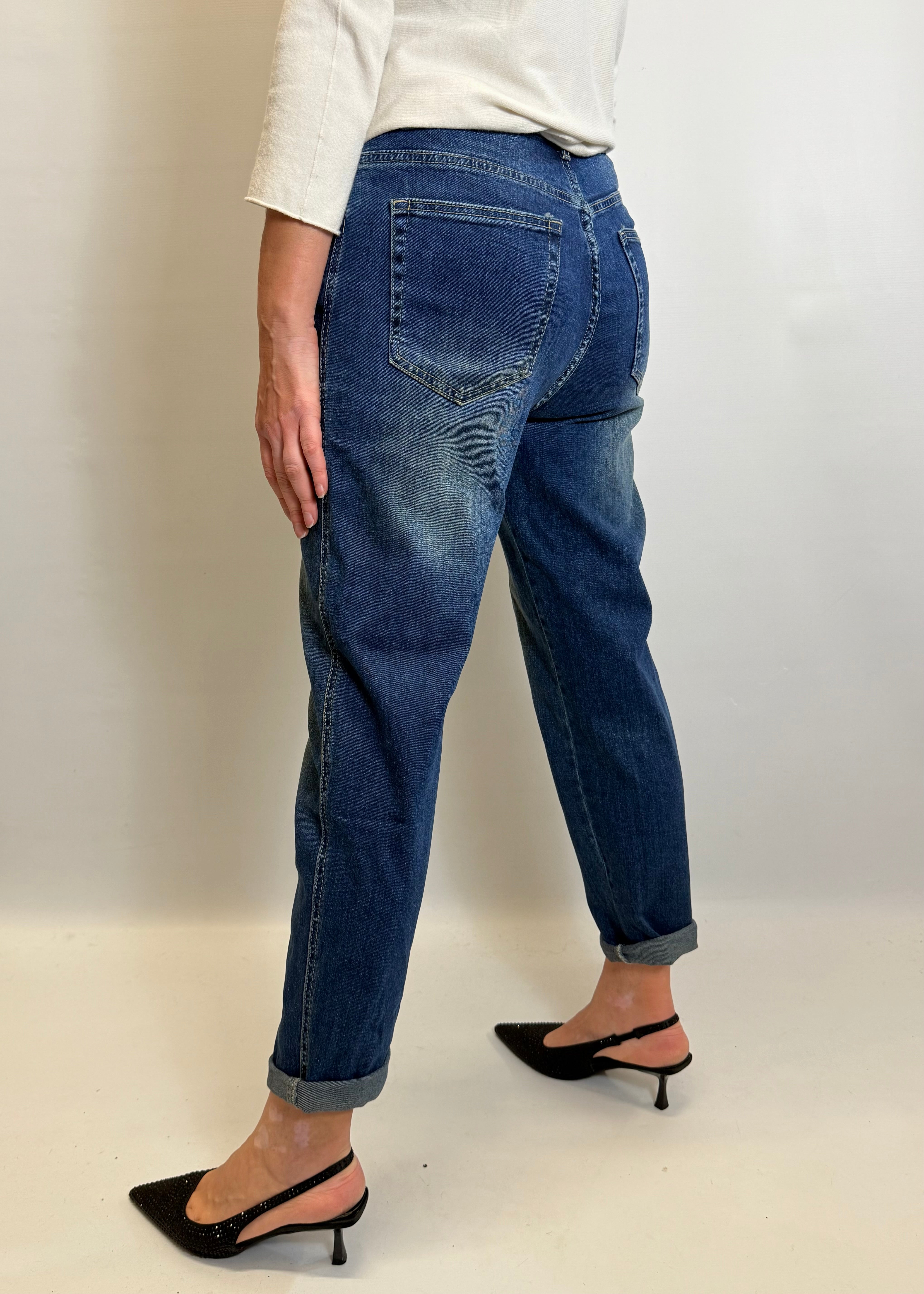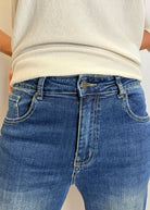 The Sarah jeans feature a soft denim fabric, designed for a relaxed, casual style. With a flattering mom fit and ankle-length cut, they offer both comfort and elegance. The size Small corresponds to a UK 10.